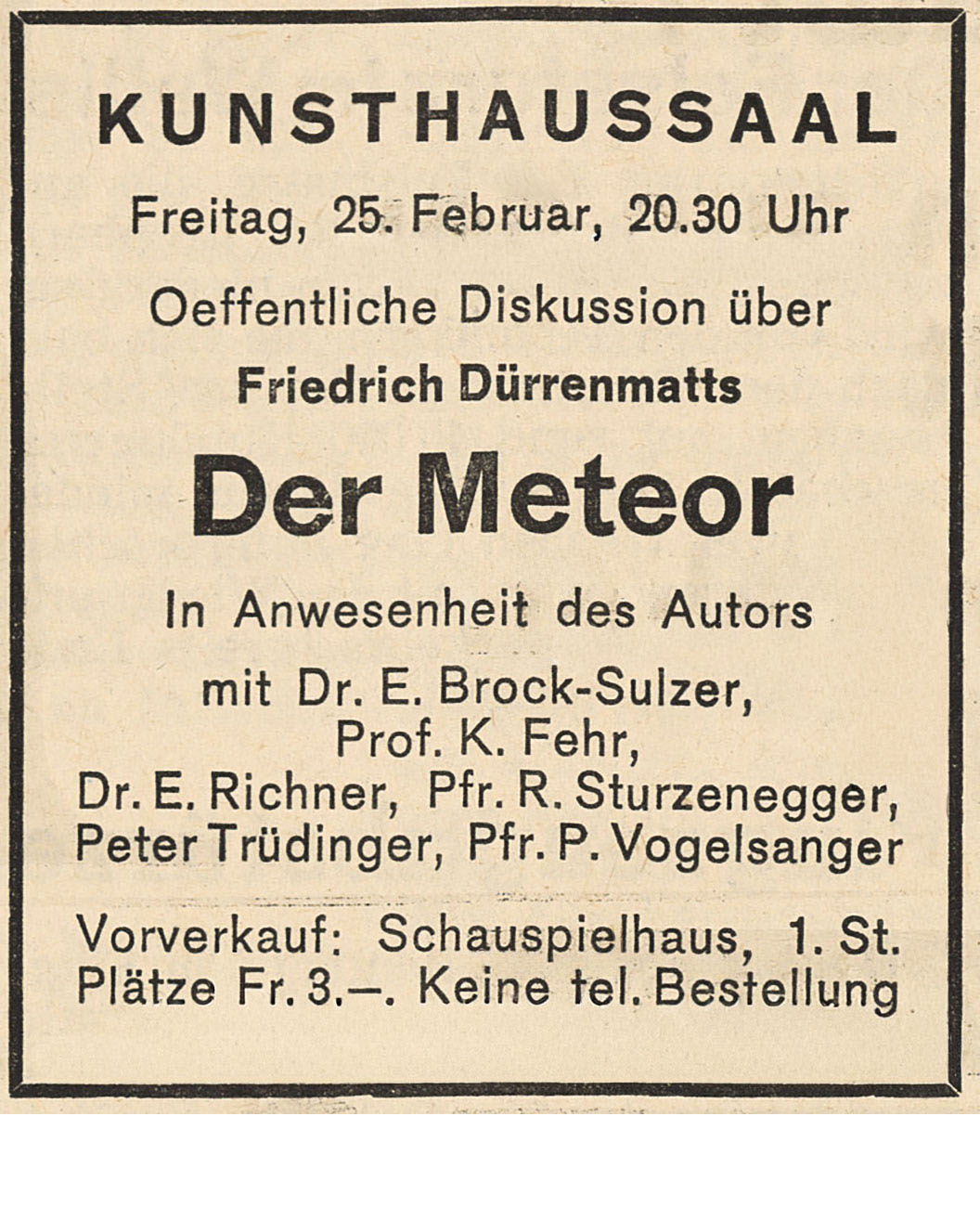 «Friedrich Dürrenmatt, von dessen Werk hier klärend gesprochen werden soll, hat einmal gesagt: ‹Ich habe keine Biographie›. (…) Suspekt sind jene Künstler, deren Leben ‹interessanter› ist als ihr Werk. Dürrenmatt ist an seinen Werken zu erkennen. Das macht seine Stärke aus. Das schreibt aber auch den Weg vor für seine Kommentatoren.»