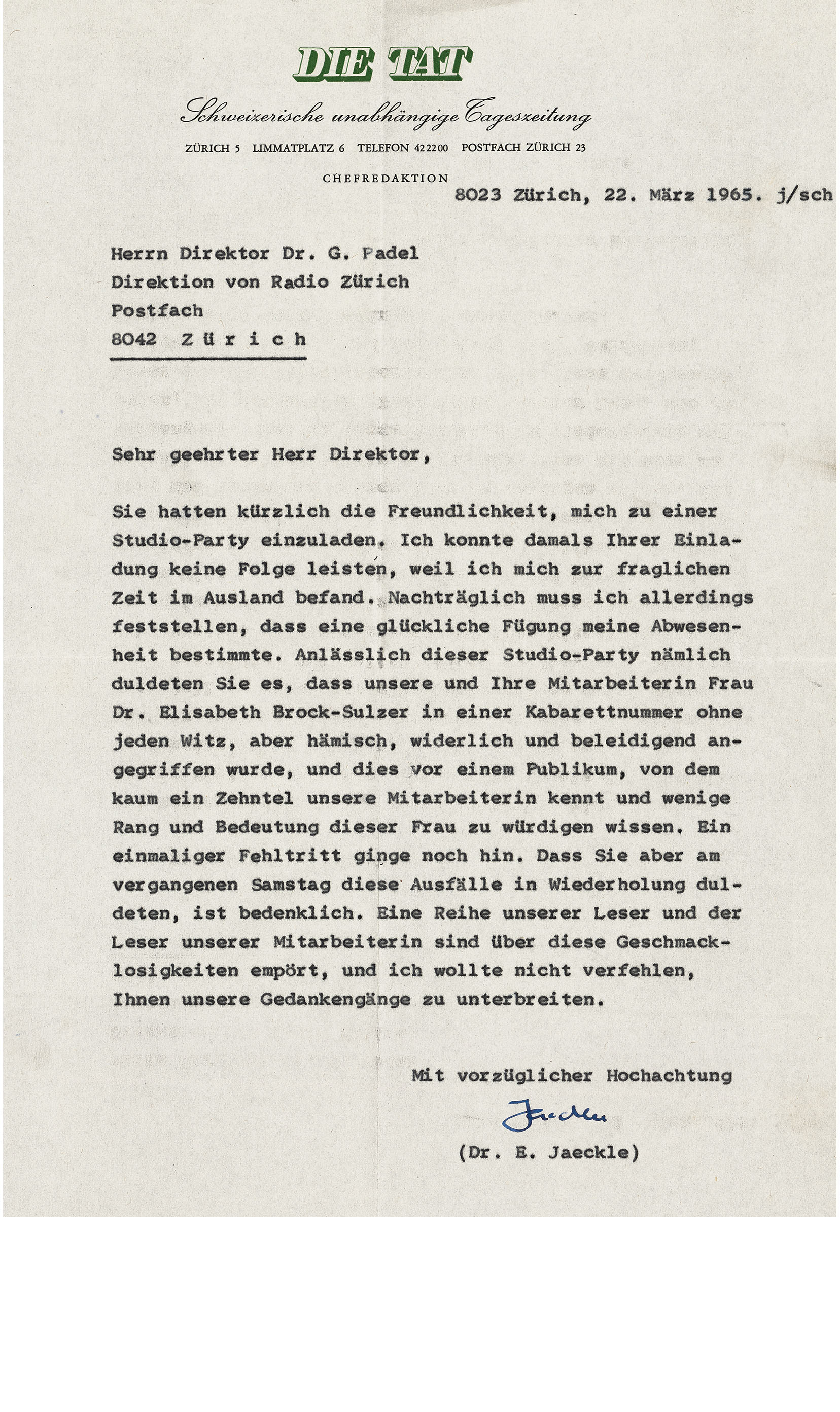 Elisabeth Brock-Sulzer: Pionierin des Feuilletons